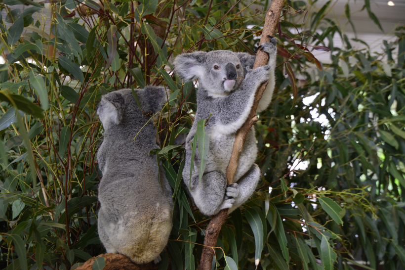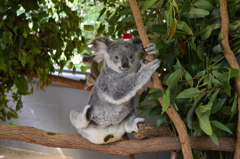 树上攀爬的顽皮树袋熊图片