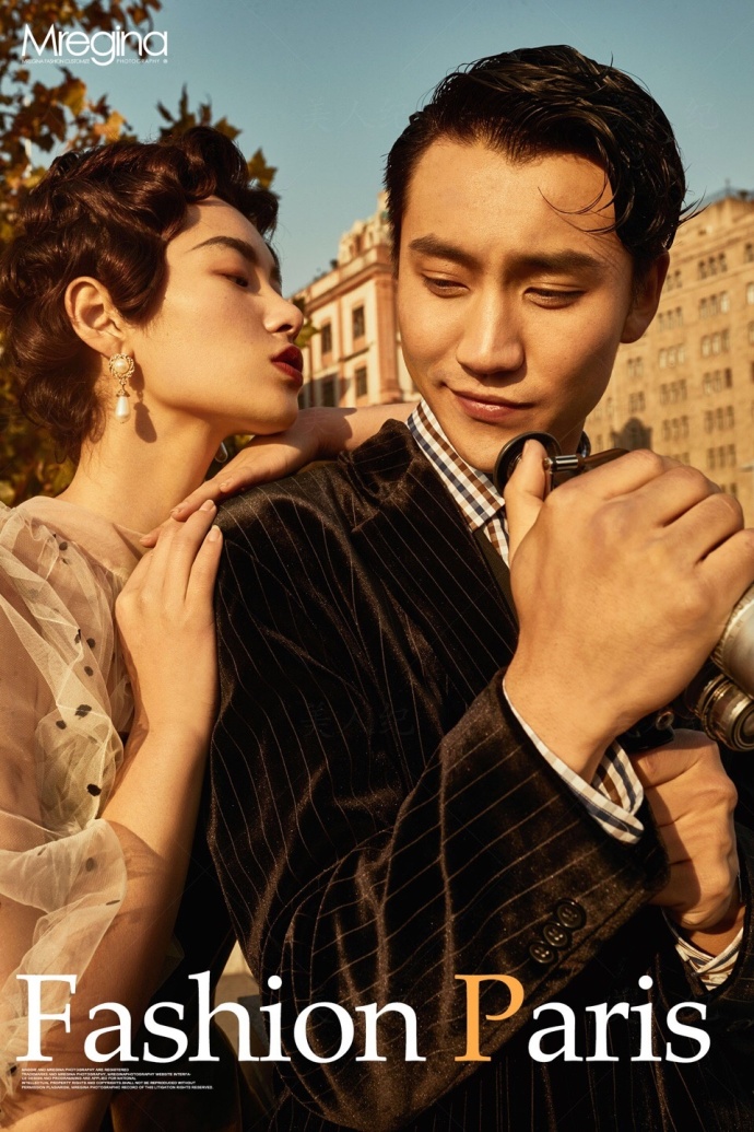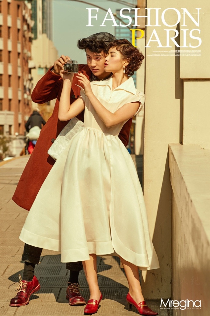 新婚夫妻复古婚纱图片