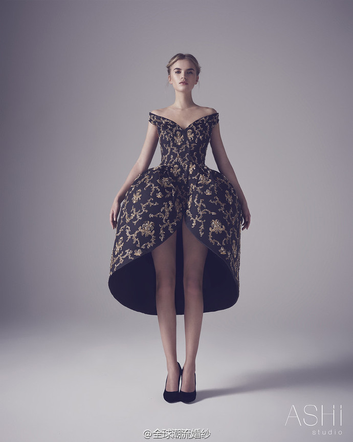 2016年ASHI STUDIO黑色的礼服婚纱图片
