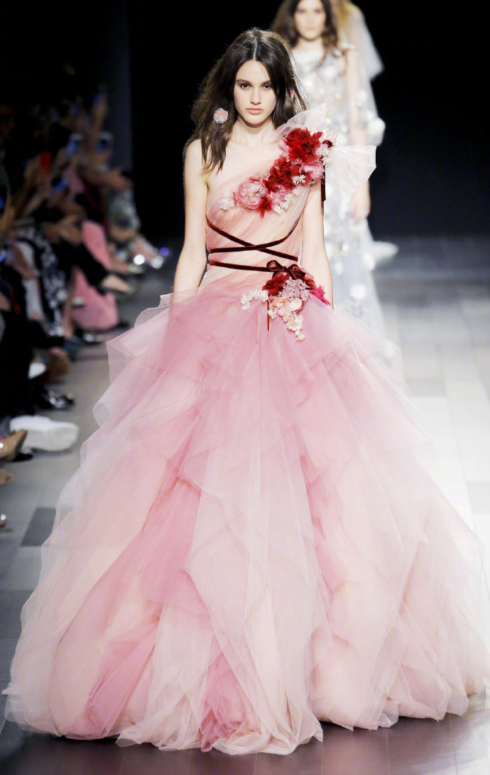 Marchesa Spring2018粉红薄纱仙女美裙礼服图片