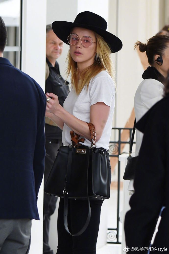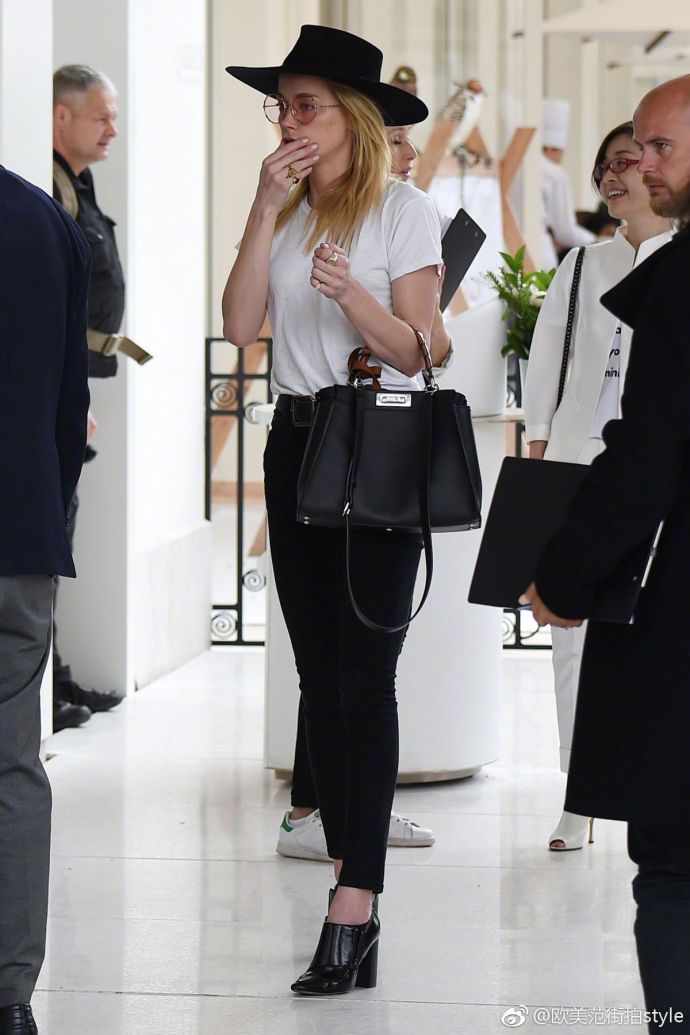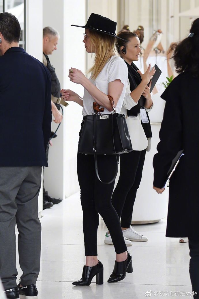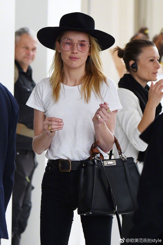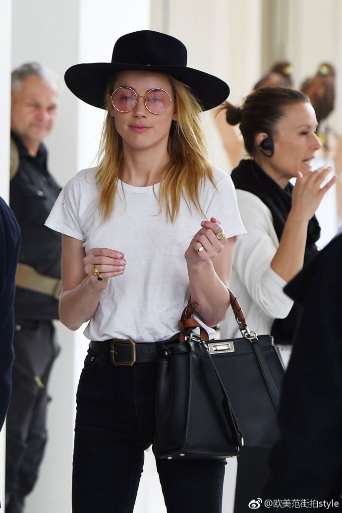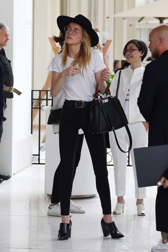 欧美美女明星Amber Heard私服黑白搭配时尚街拍图片