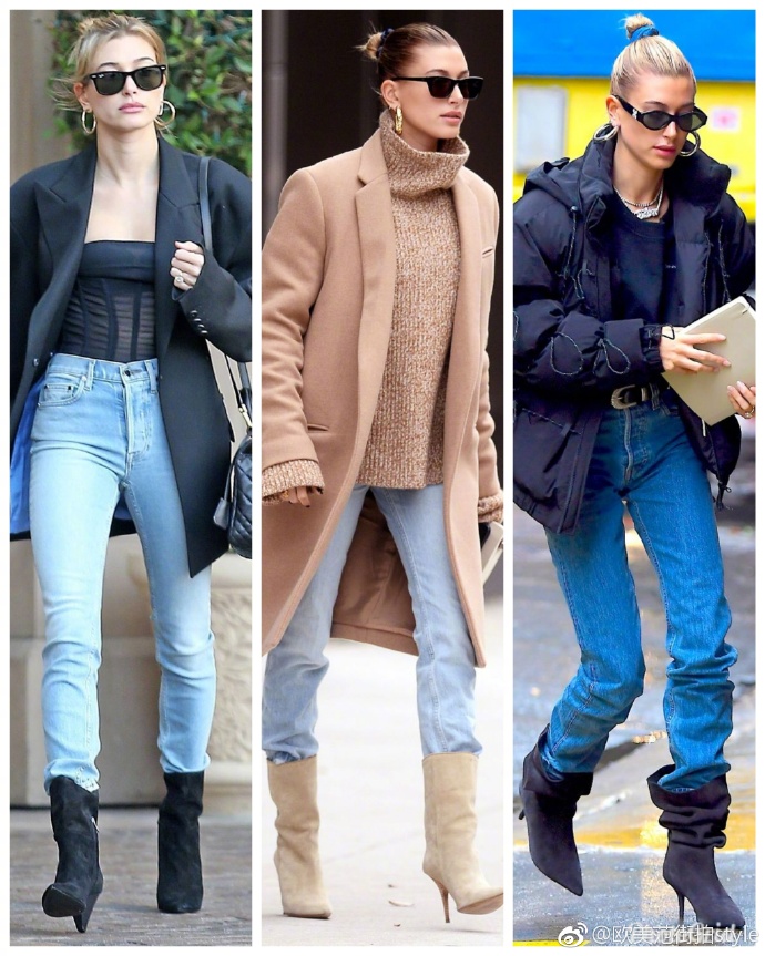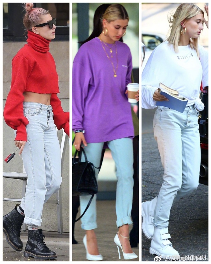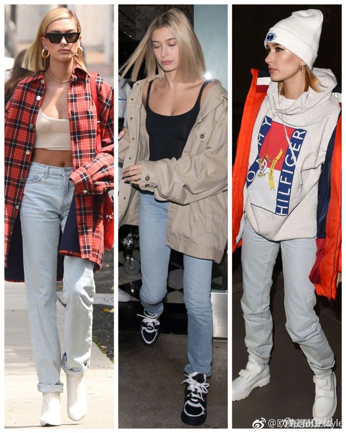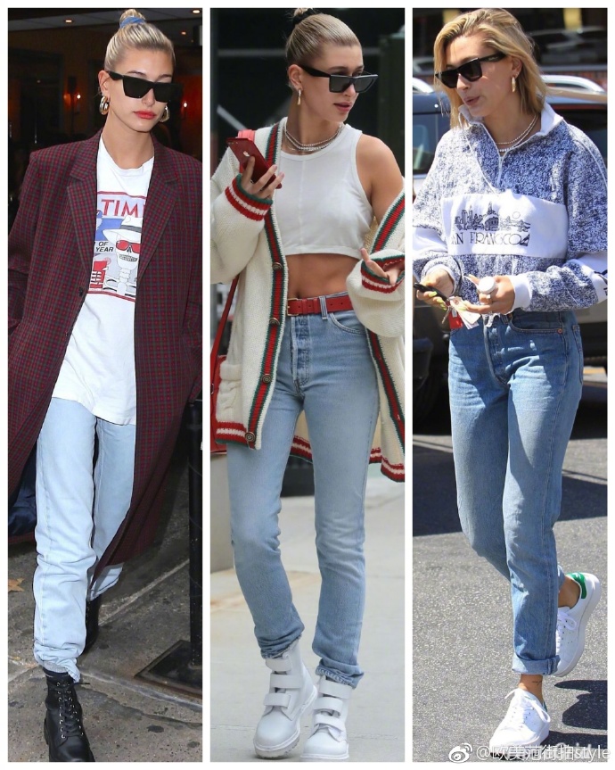欧美美女明星Hailey Baldwin时髦有型的牛仔风街拍特