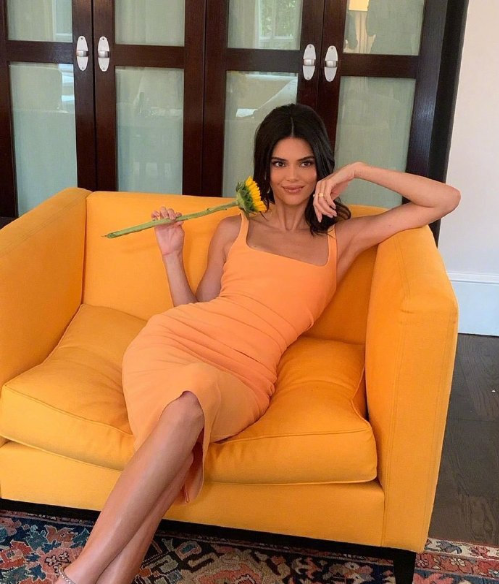 美国美女模特Kendall Jenner小黄裙街拍图片 欧美美