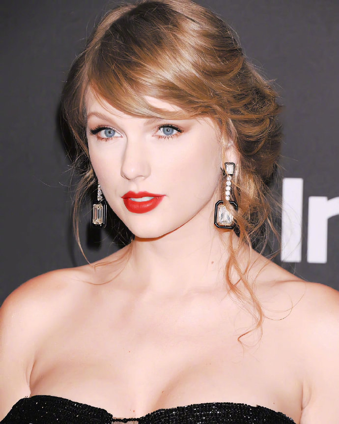 美国美女图片 女歌手Taylor Swift性感黑裙搭配红唇