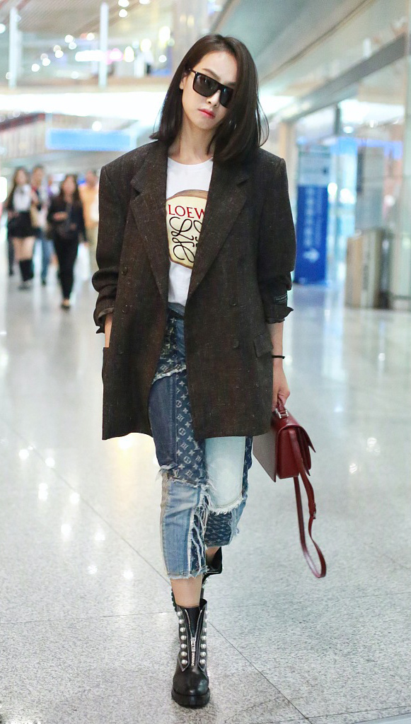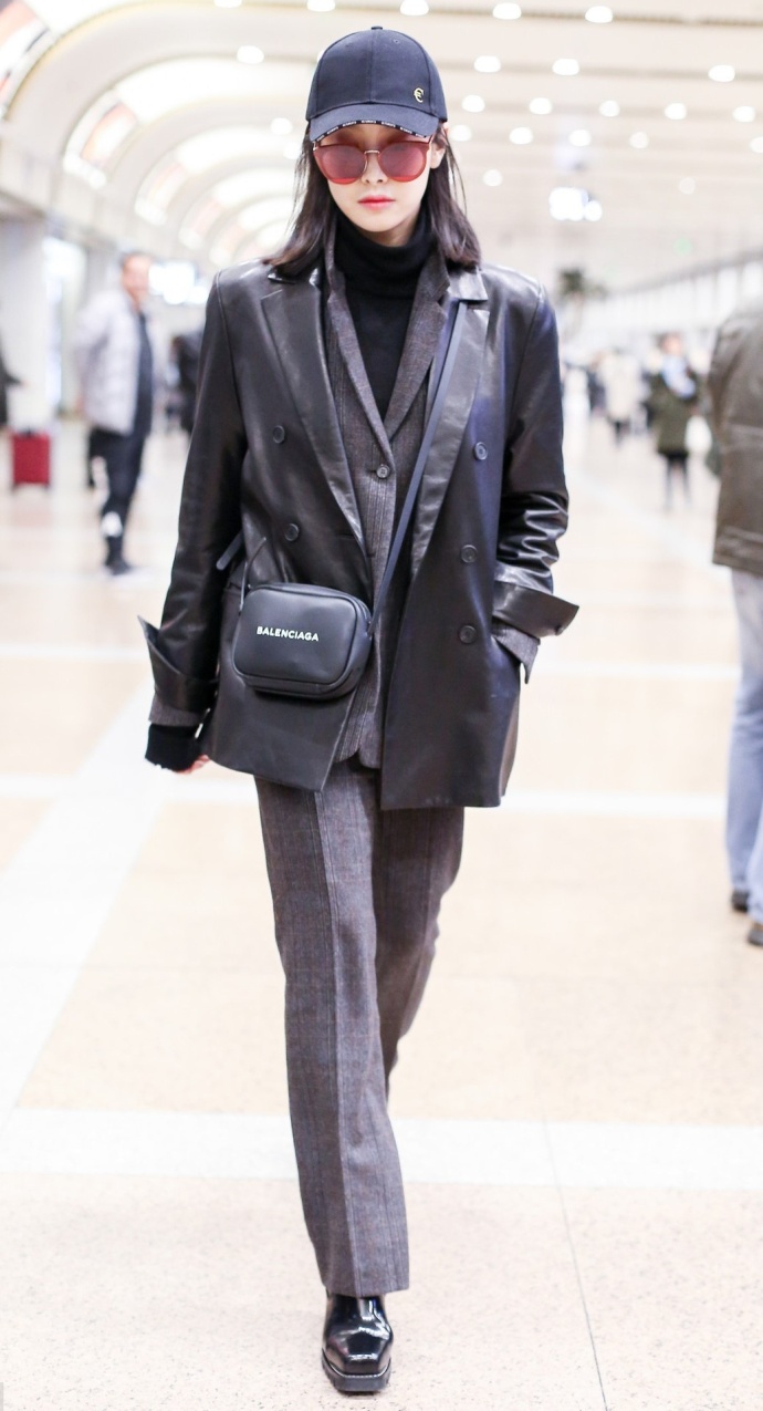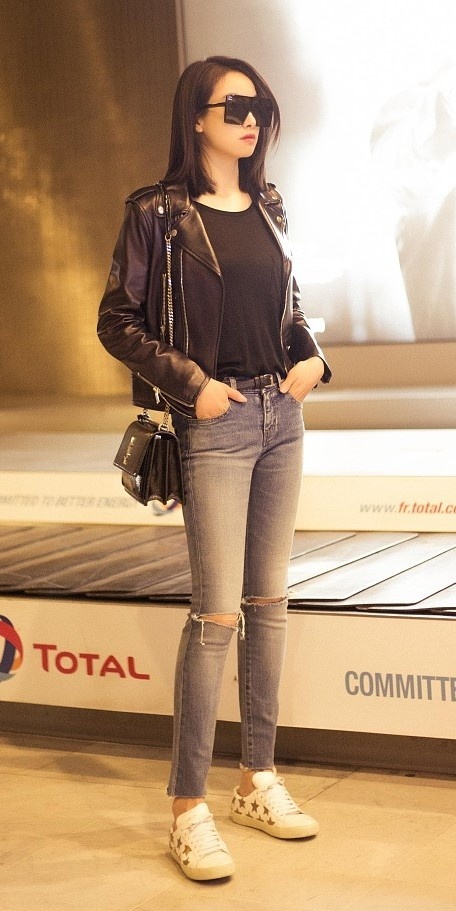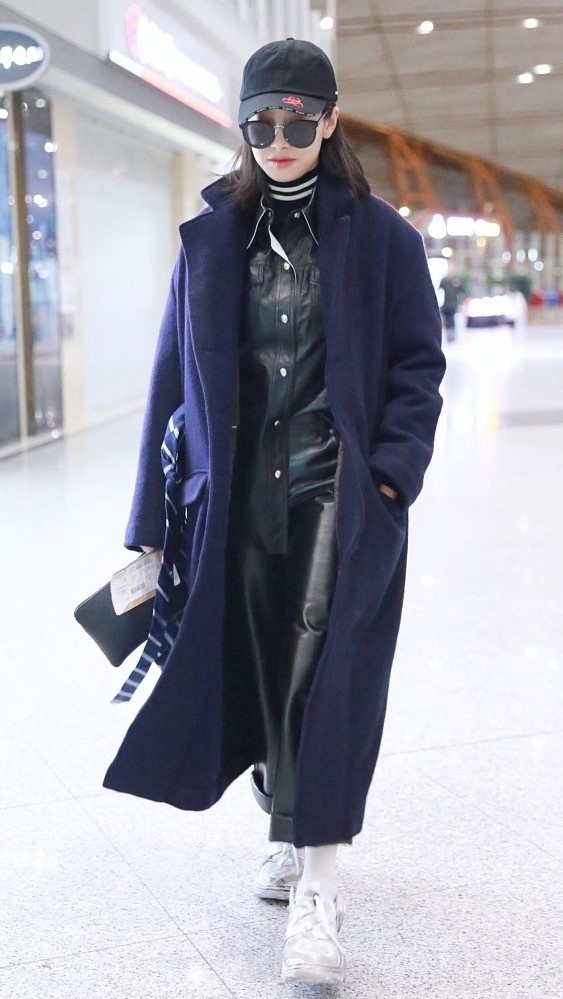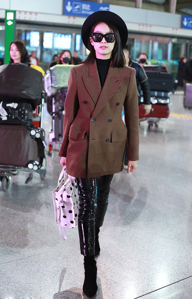 青岛美女明星宋茜精心的搭配机场时尚街拍图片