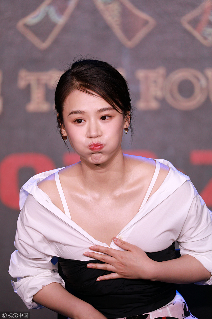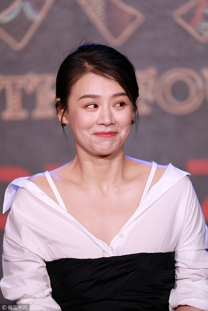 大眼美女明星马思纯身穿深V白衣露出性感锁骨出