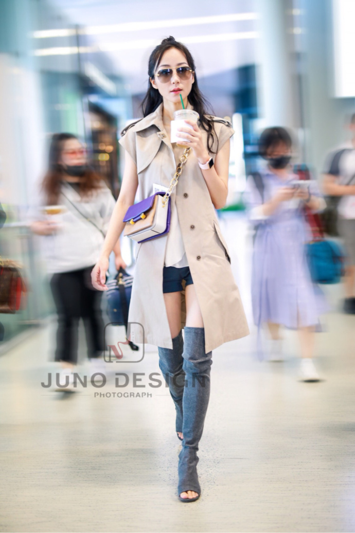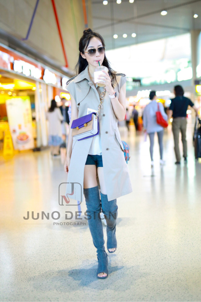 气质美女明星韩雪黑色短裤搭配鱼嘴过膝靴大秀