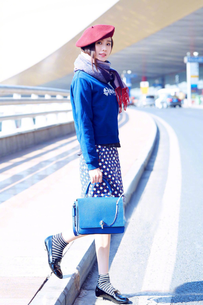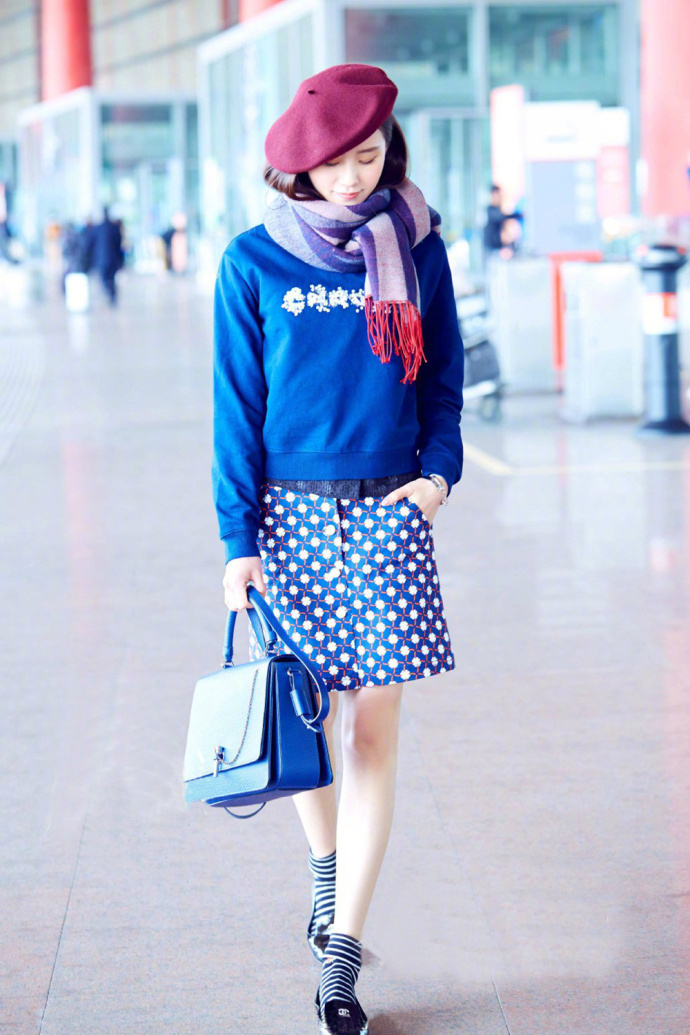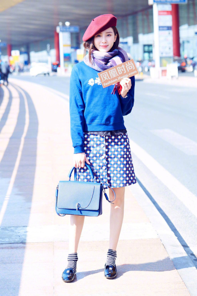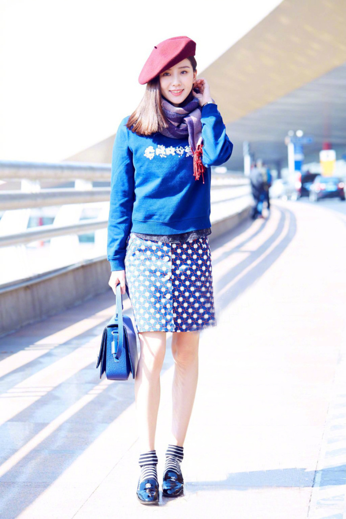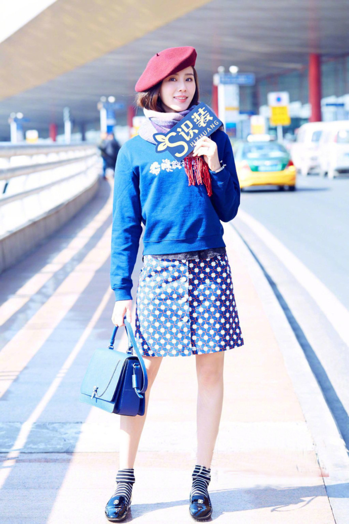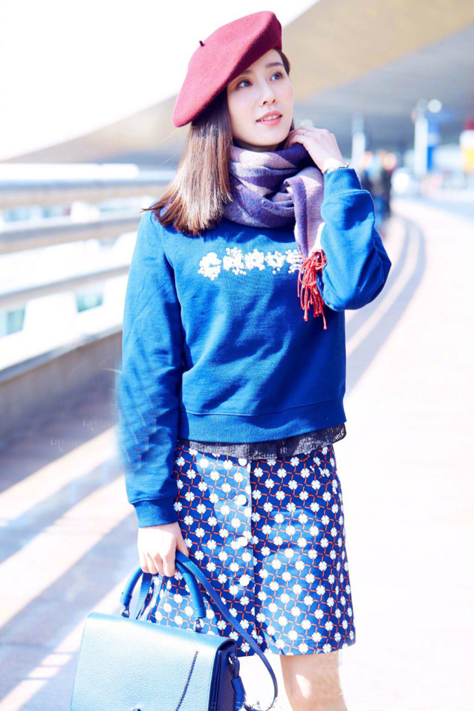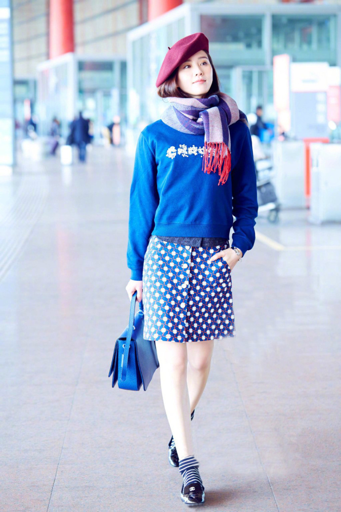 北京美女明星刘诗诗蓝色卫衣搭配短裙秒回到1