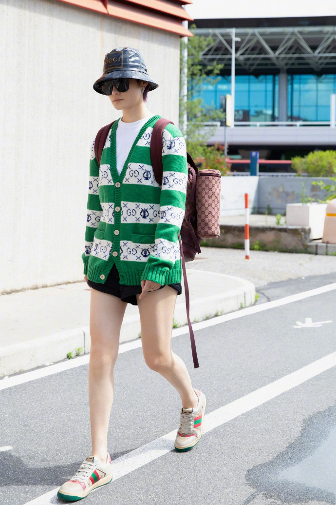 四川美女图片 酷酷的女明星李宇春蓝色针织衫街