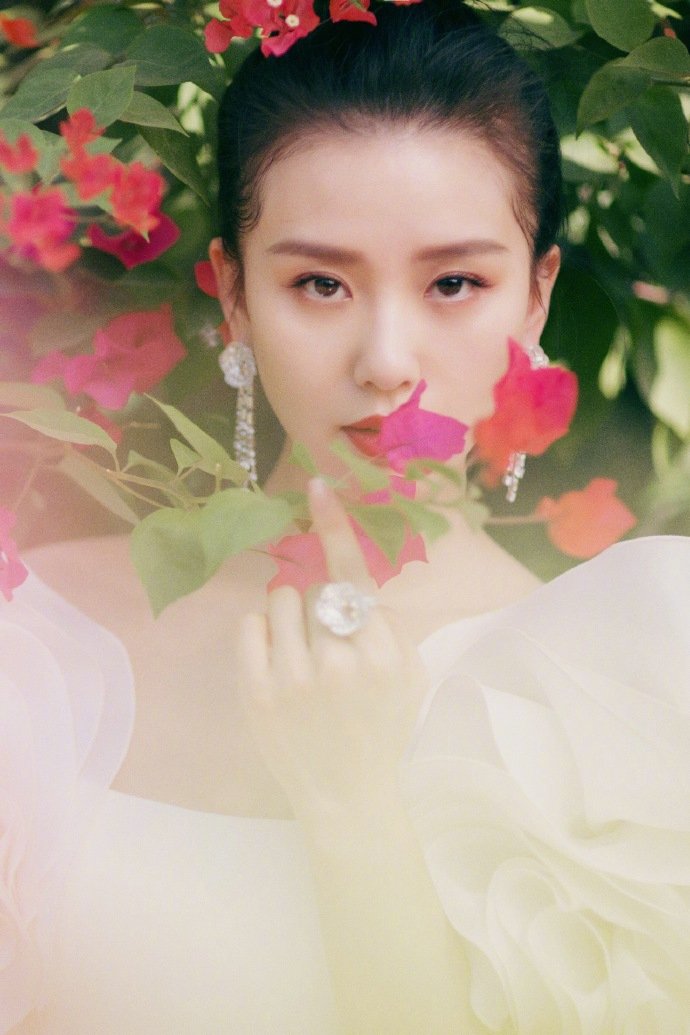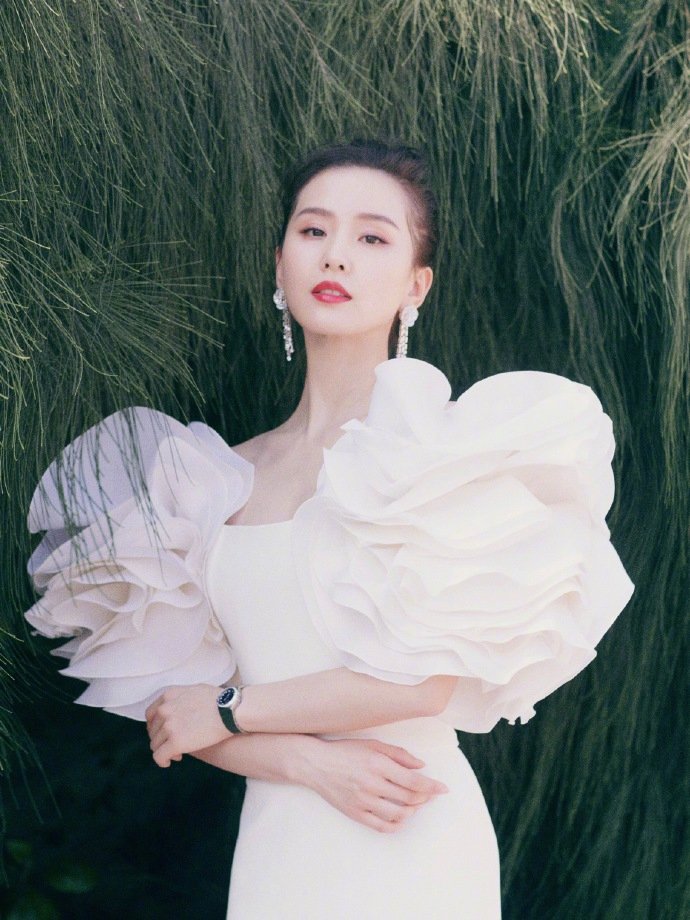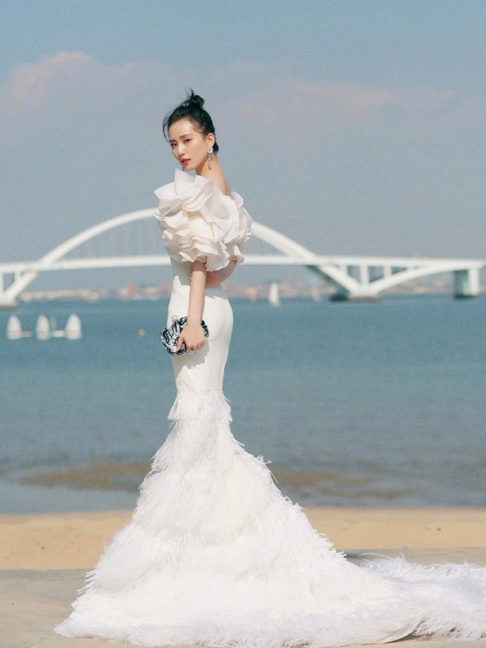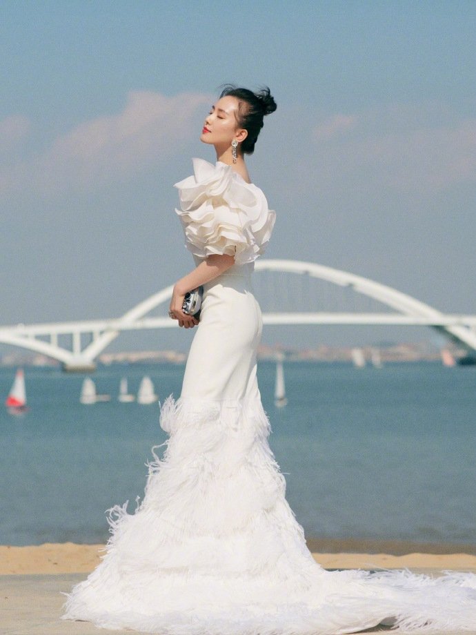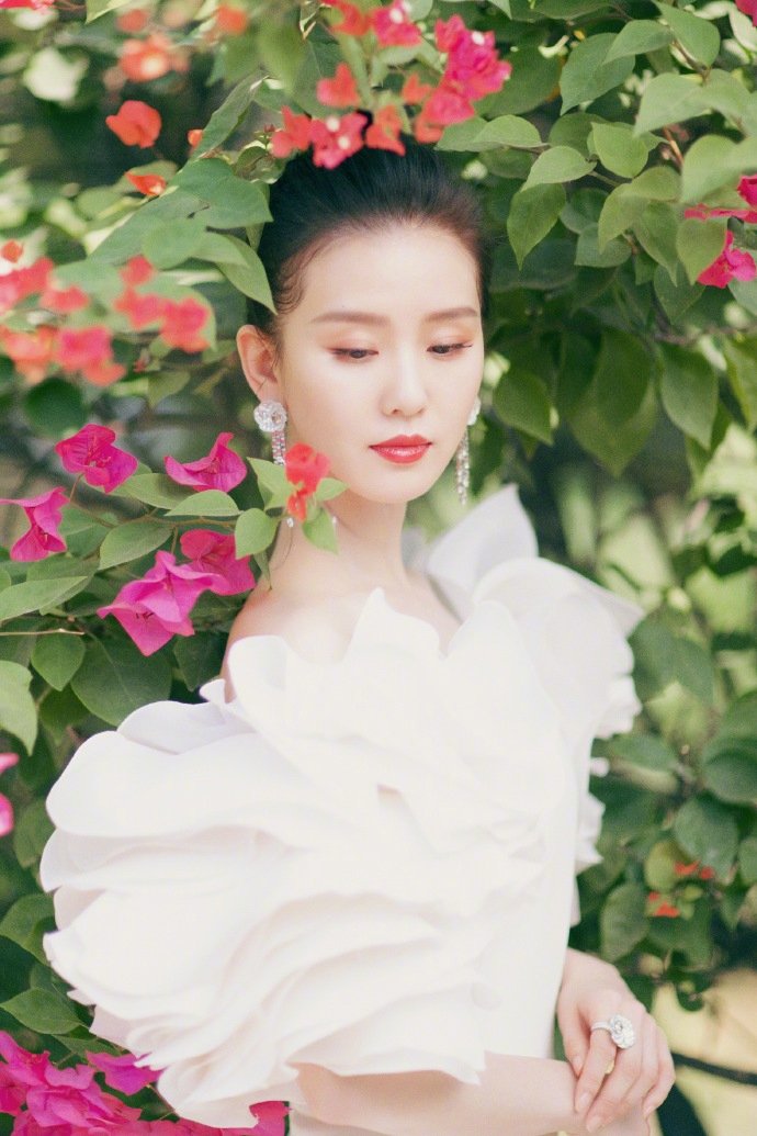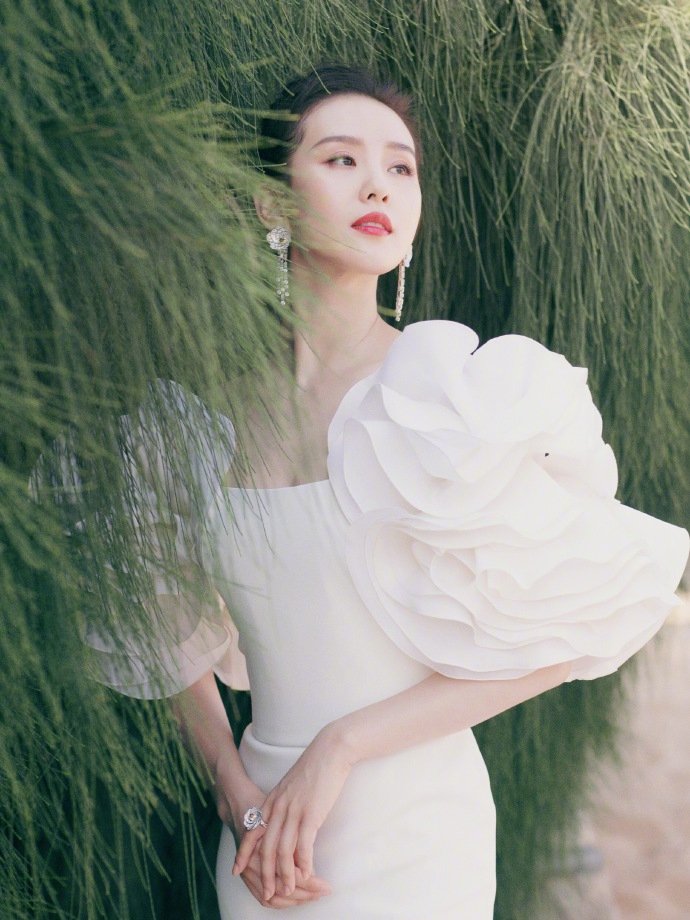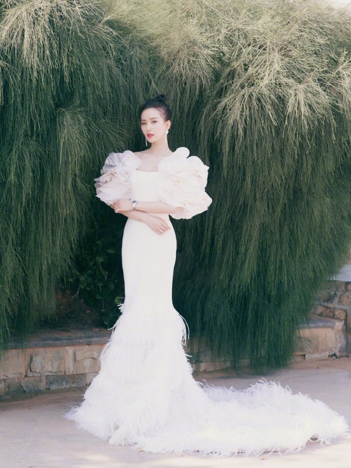 中国美女演员刘诗诗花仙子白色鱼尾裙唯美写真图片