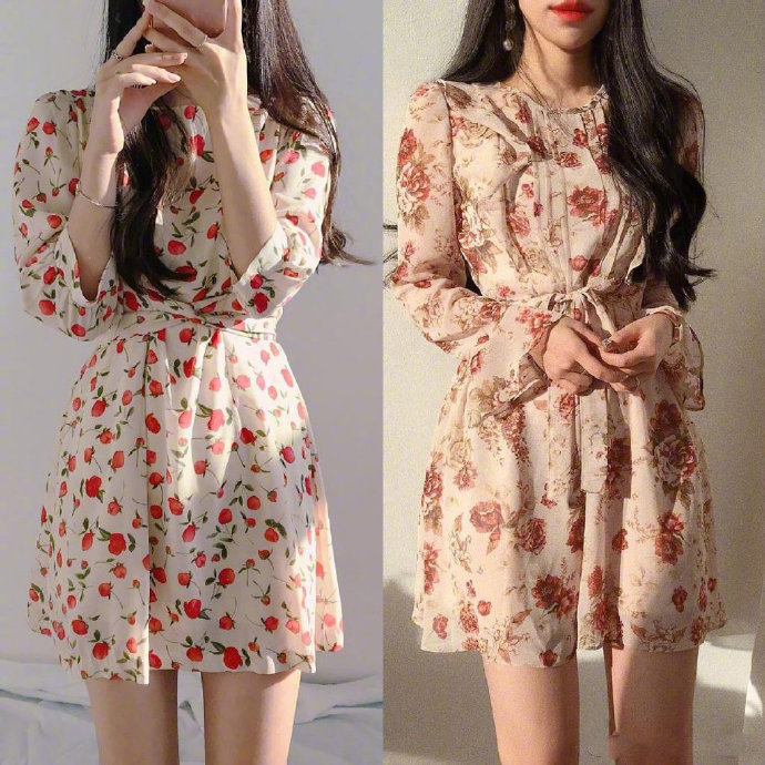 阳光美女图片 适合春天的碎花裙搭配图片