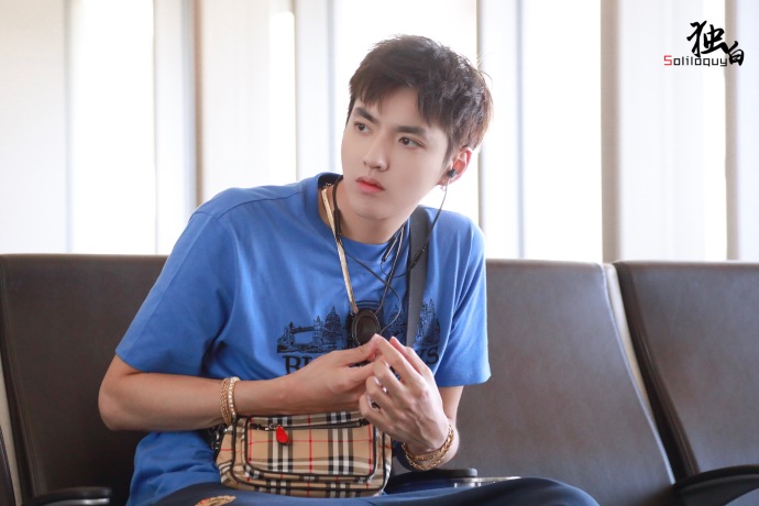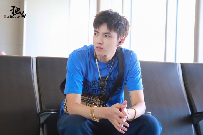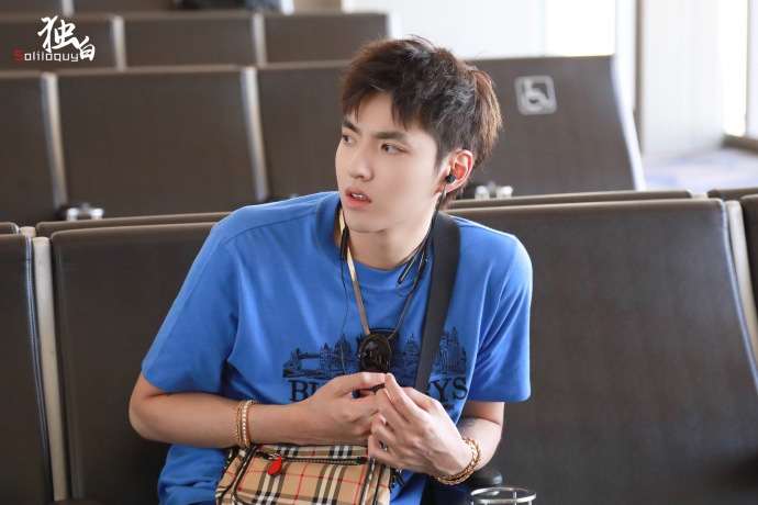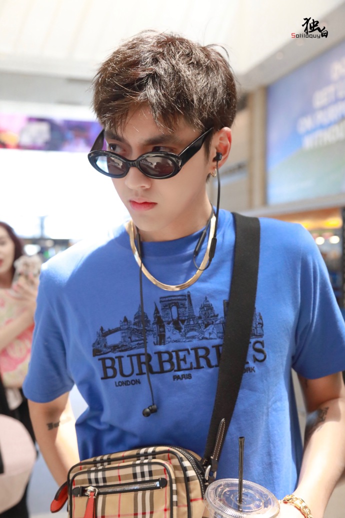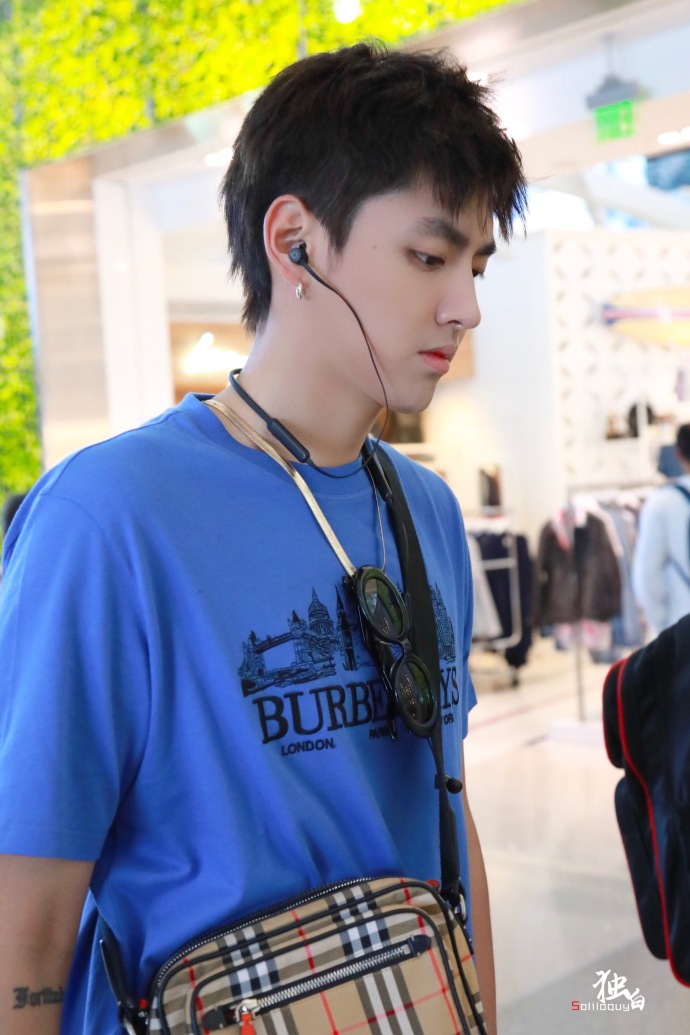 内地小鲜肉男明星吴亦凡蓝色运动休闲风现身机