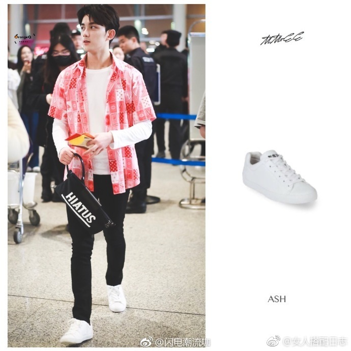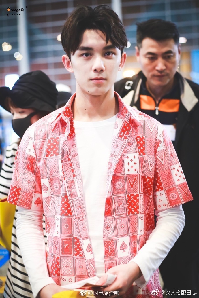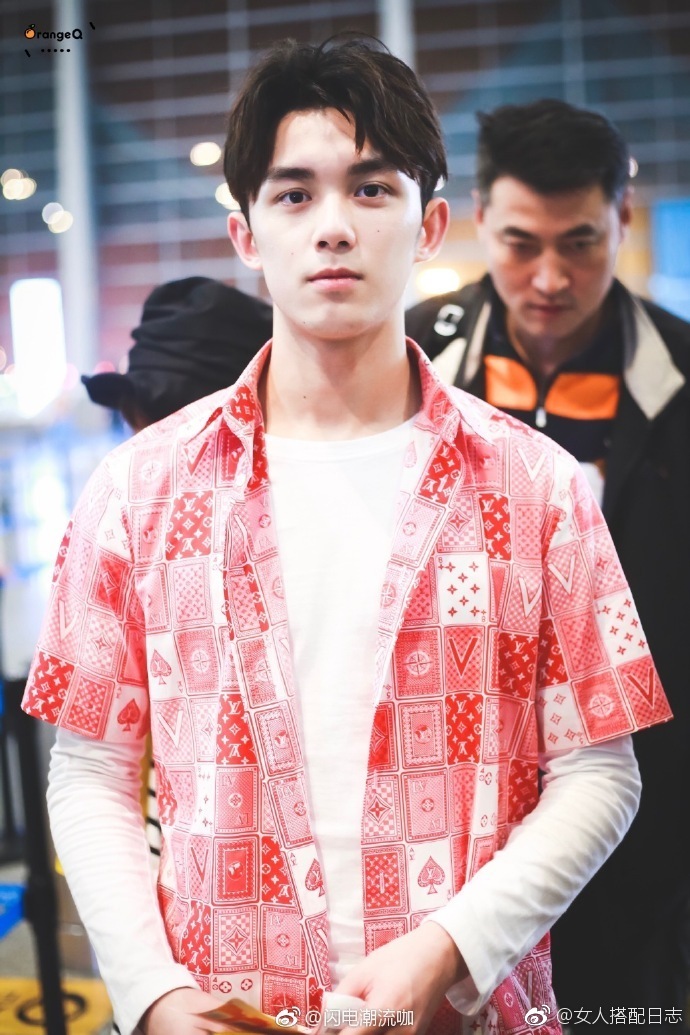 吴磊早秋衬衫渔夫帽小白鞋大长腿机场街拍唇红