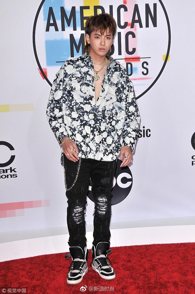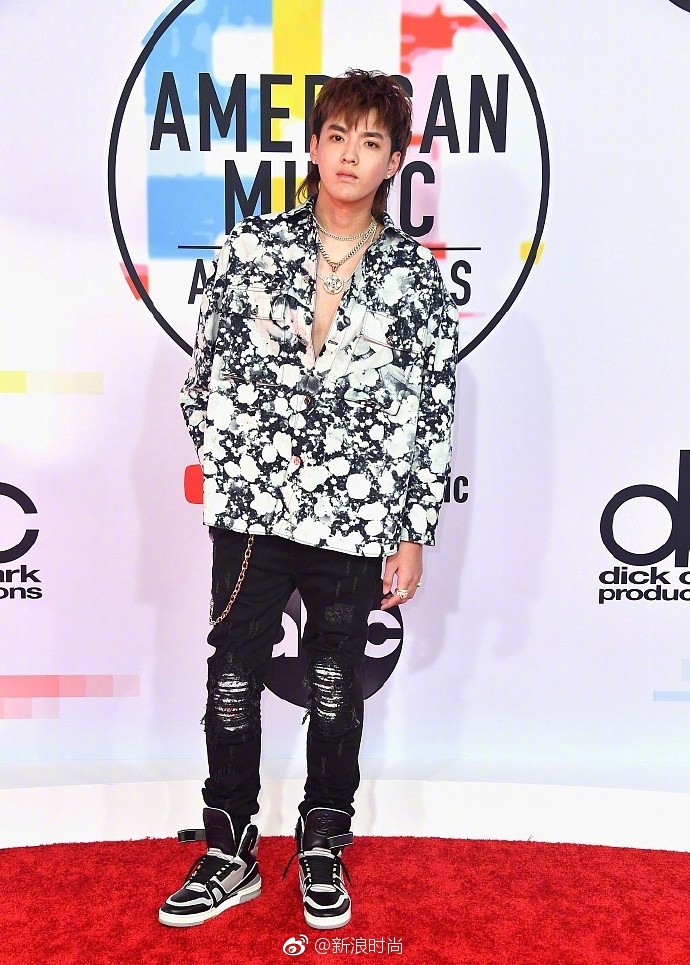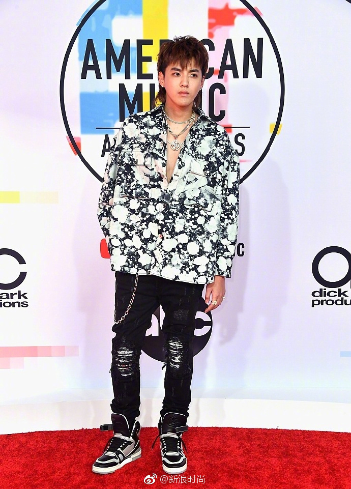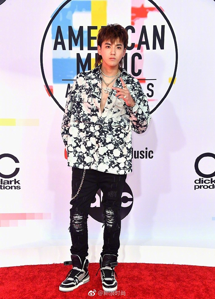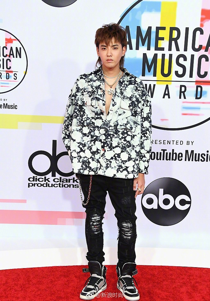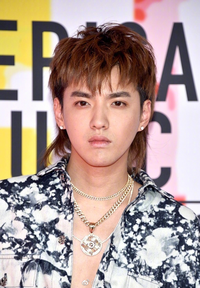 内地男明星吴亦凡鲟鱼头港仔复古风亮相全美音