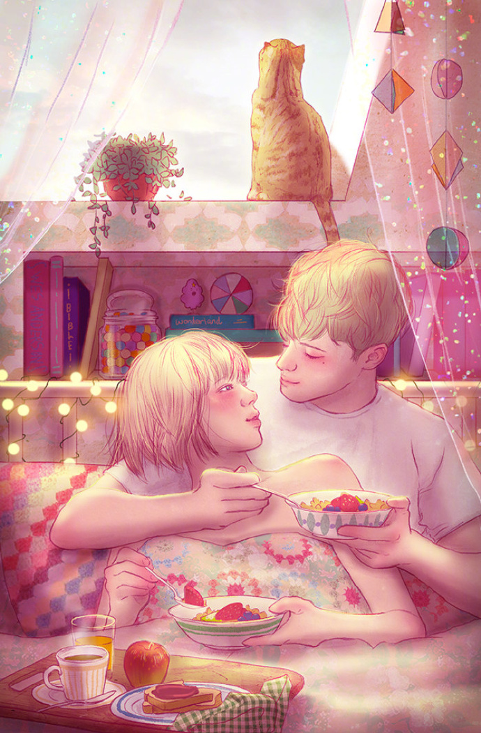 唯美动漫情侣图片 情感语录 爱得深 爱得早 都不