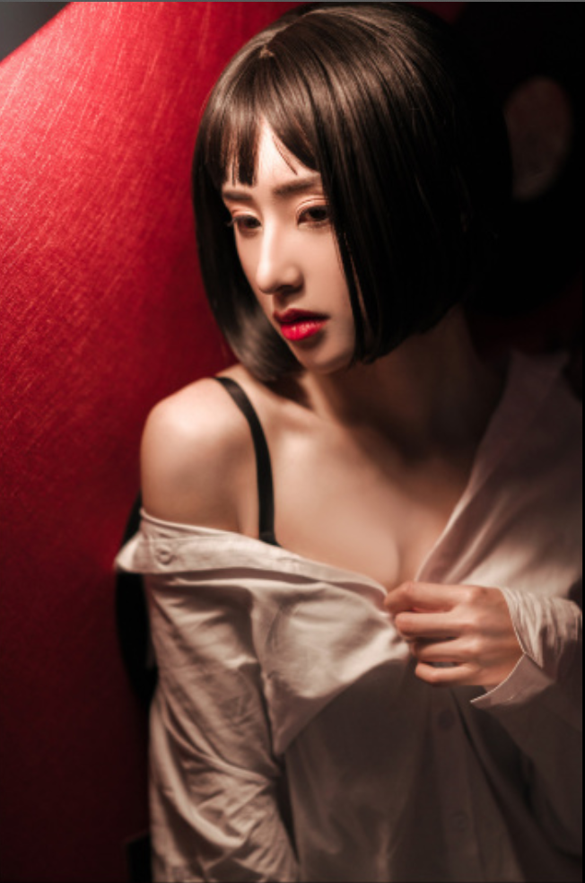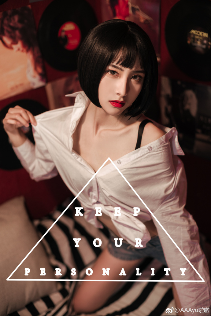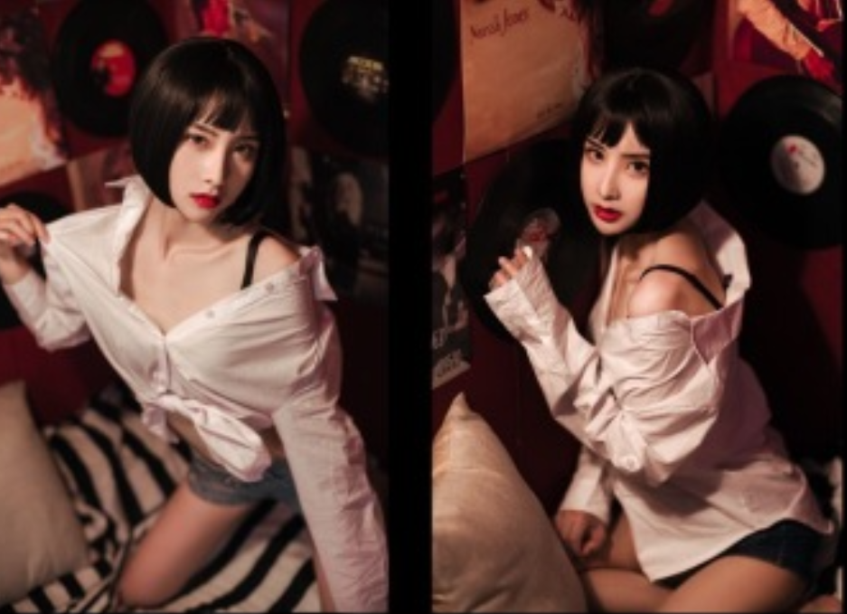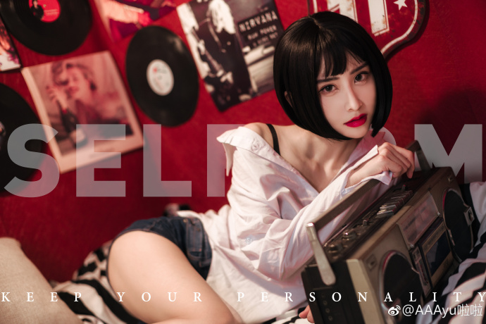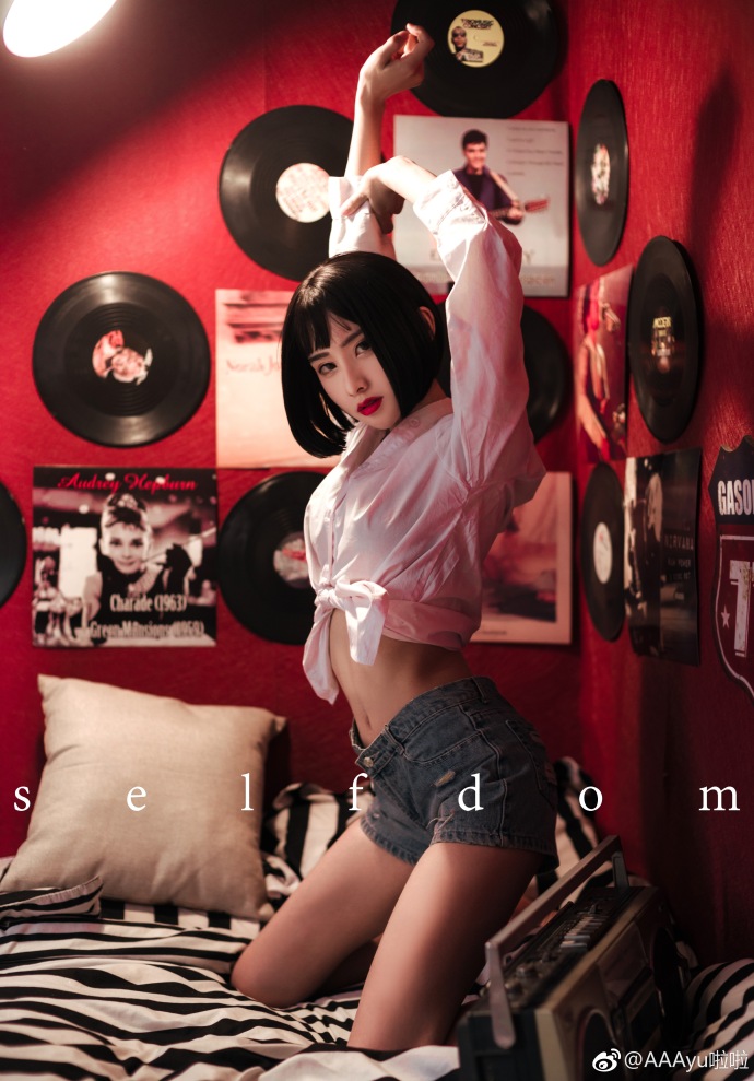 性感美女模特AAAyu啦啦白衬衫搭配大红唇诱惑福利