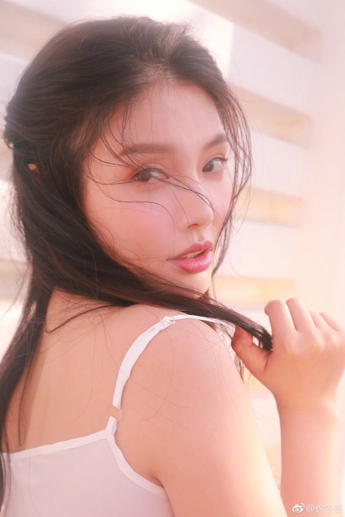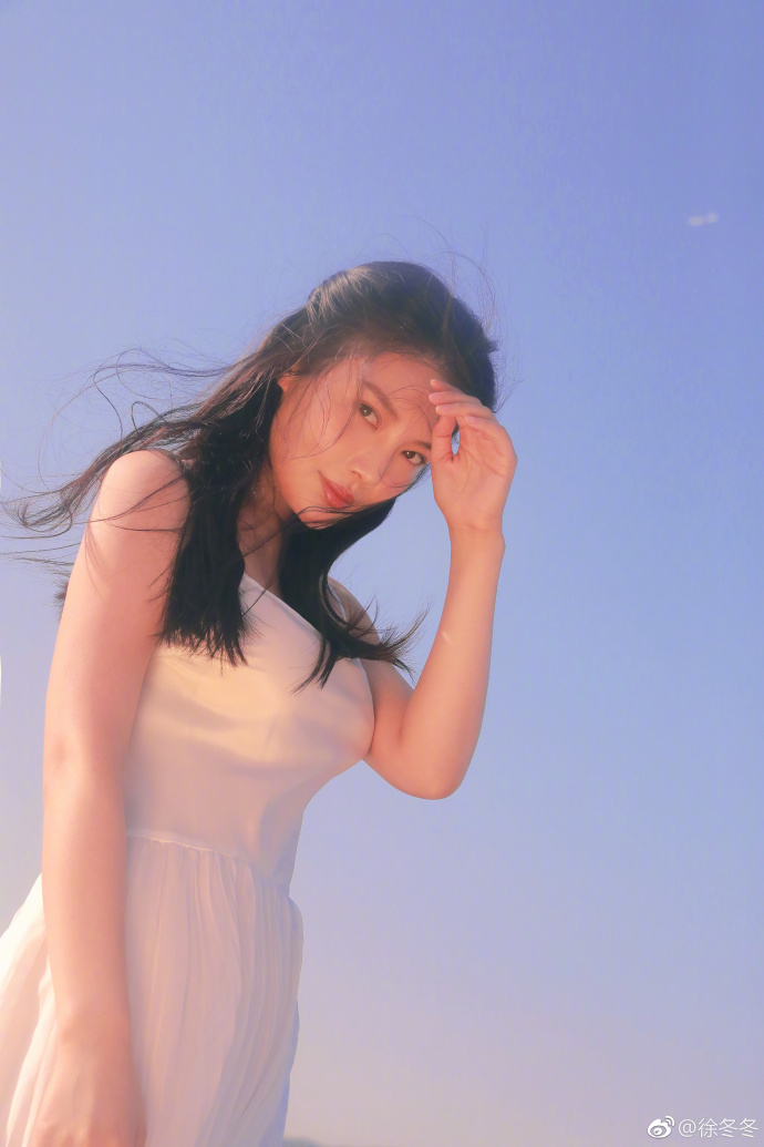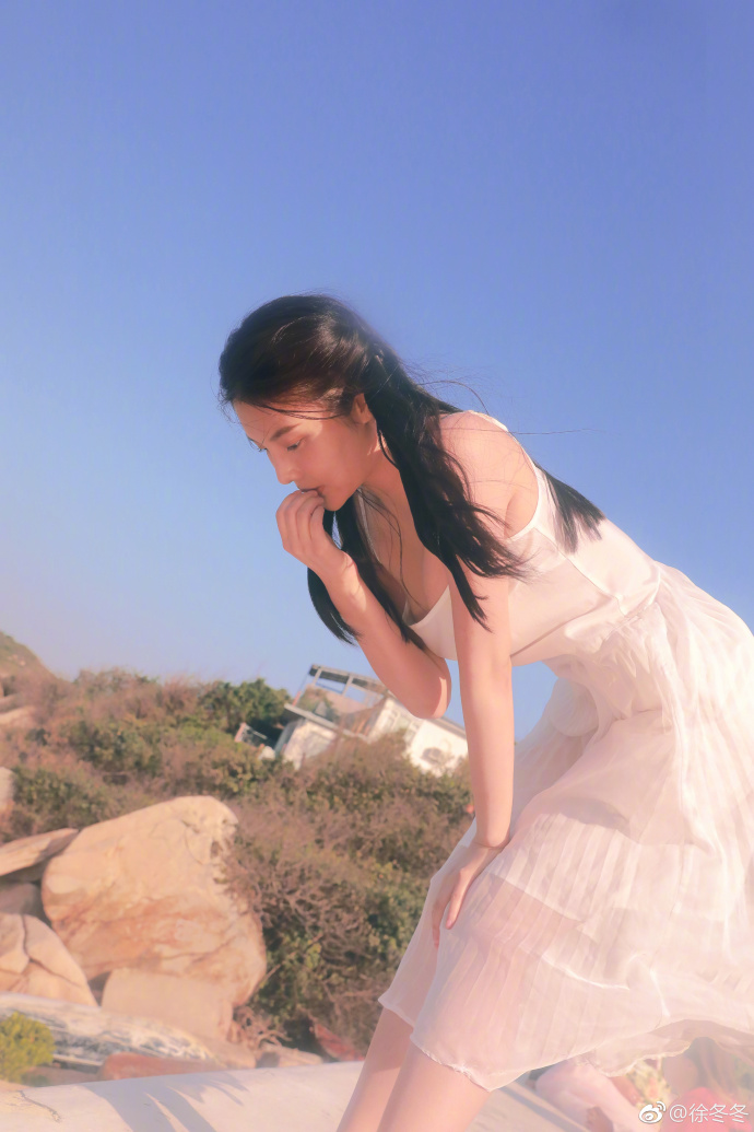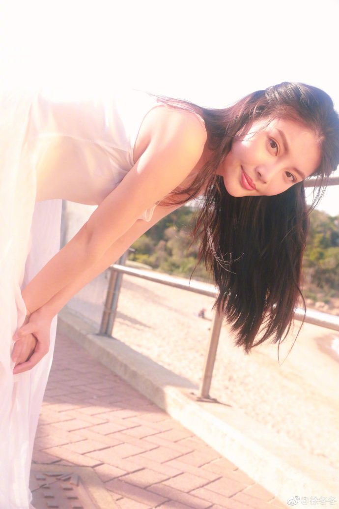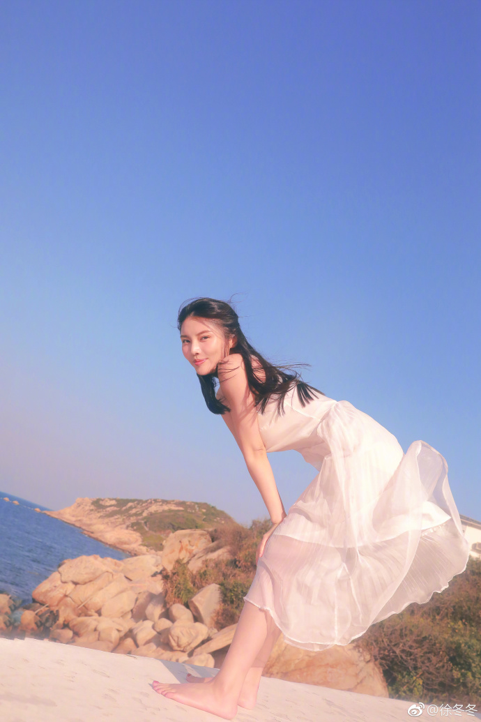 性感女星徐冬冬晒出一组海边写真白色吊带裙仍